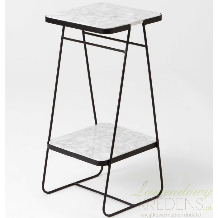 Wysoki stolik skandynawski pochodzenia francuskiego z marmurowym blatem i dodatkową półką!