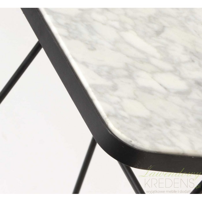 Meble skandynawskie to proste i uniwersalne meble, które pasują do każdego rodzaju wnętrza. Stolik skandynawski stoi na długich, metalowych nogach i ma marmurowy blat. Jest w kolorach czerni i kremu. Stolik z marmurowym blatem ma kwadratowy kształt i dodatkową półkę na dole. Idealny do ogrodu czy na działkę.