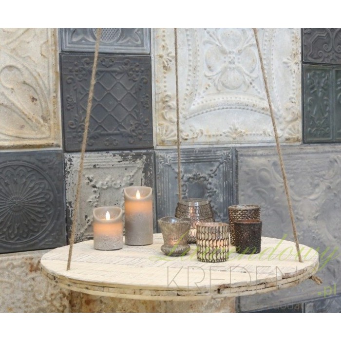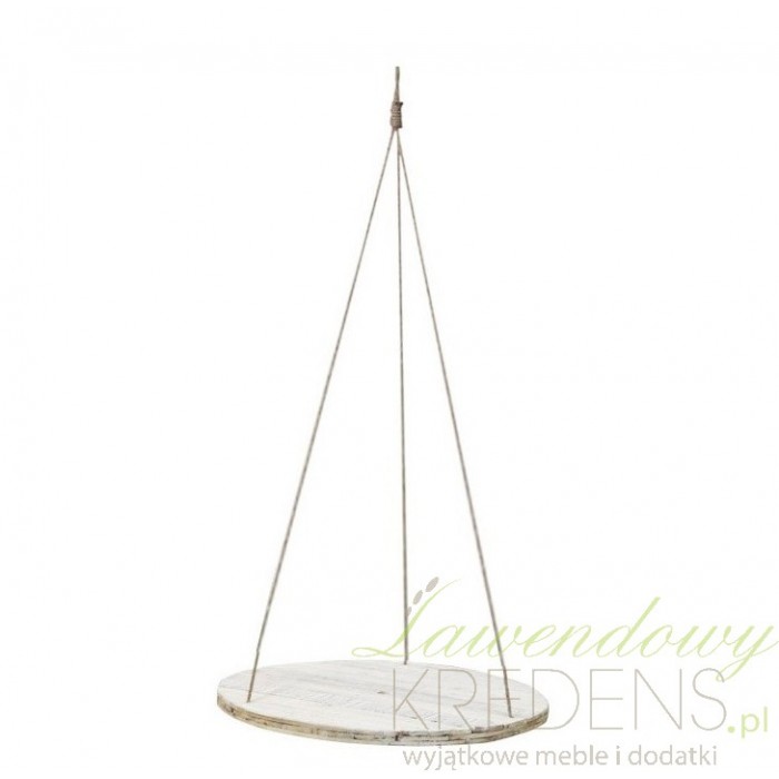 Półka na linach to nowoczesne rozwiązanie do Twojego wnętrza od firmy Chic Antique. Półka jest okrągła o średnicy 65cm, podtrzymana na długich sznurach, które można zawiesić na suficie. Wielofunkcyjna półka na sznurach sprawdzi się w różnych pomieszczeniach. Półkę można zastosować na świeczki, książki czy inne gadżety. Jeśli poszukujesz oryginalnego mebla to ta półka będzie idealna!