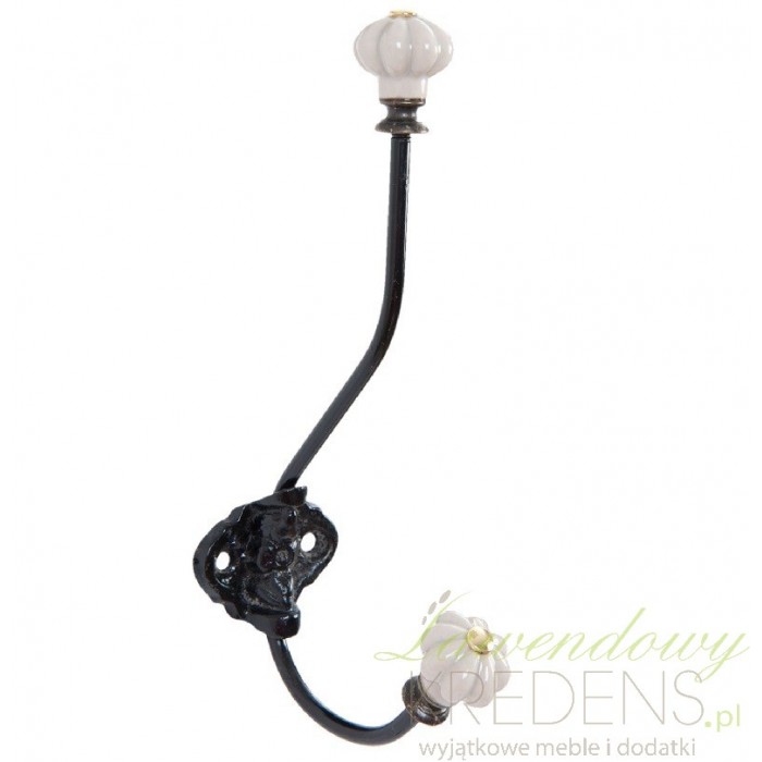 Tradycyjne wieszaki ścienne warto zastąpić przez wieszaki w stylu prowansalskim. To właśnie proste, ale zarazem oryginalnie zdobione wieszaki ścienne nadadzą wnętrzu ostateczny charakter. Wieszak scienny, który dla Ciebie przygotowaliśmy to metalowy, smukły uchwyt z dwoma haczykami zakończonymi białą gałką w kształcie kwiatuszka. Wybierz czarny wieszak do kuchni, do łazienki i do przedpokoju.