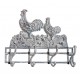 Wieszak ścienny z kurą i kogutem o szarawym kolorze na którym można zawiesić cztery kurtki bądź ręczniki.