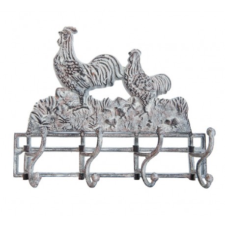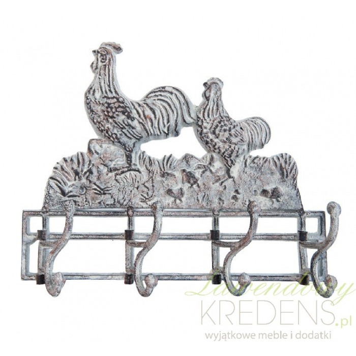 Wieszak żeliwny o fantastycznym rustykalnym klimacie posiada bielony kolor. Wieszak z kogutami wykonany został z żeliwa dzięki czemu jest niezwykle wytrzymały. Ten wieszak ścienny znajdzie swoje miejsce w łazience, kuchni lub przedpokoju.