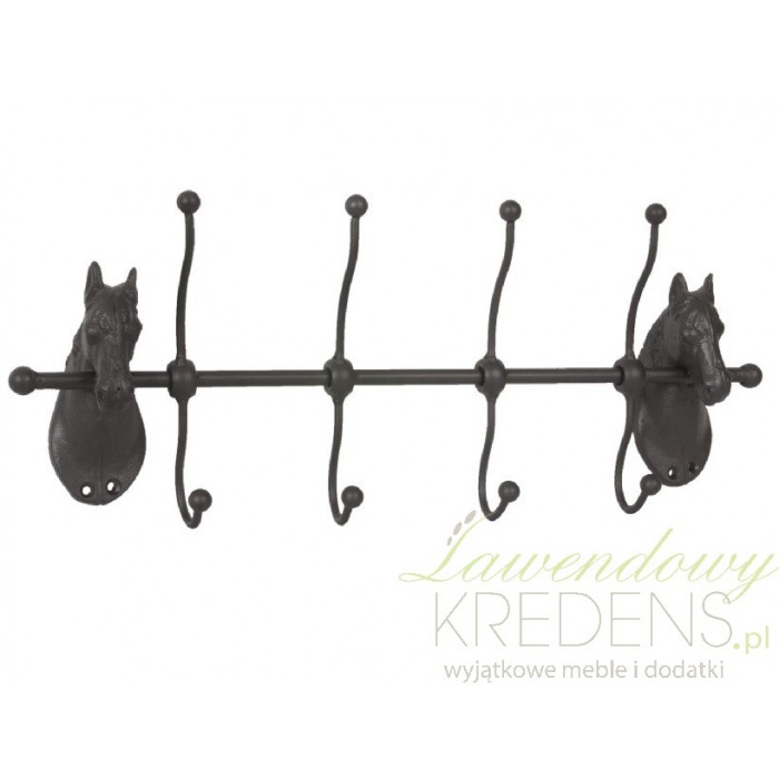 Wieszaki ścienne, a wśród nich wieszaki z końmi to wspaniały dodatek w stylizacji wystroju wnętrza. Wieszak z końmi firmy Clayre & Eef ma brązowy kolor i cztery znajdujące się w równej od siebie odległości wieszaczki. Po obu stronach wieszaka znajdują się dekoracje w formie głowy konia. Idealny prezent dla miłośników zwierząt.