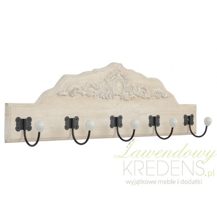 Wieszak ścienny, który planujesz zamontować w przedpokoju rodzinnego wnętrza powinien być duży i nienagannie się prezentować. Gorąco polecamy wieszaki w stylu prowansalskim o francuskiej urodzie. Ten wieszak ma w górnej częśći piękne rzeźbienie, a u dołu aż pięć haczyków z metalu. Wybierz wieszak prowansalski, by Twój dom był zawsze gotowy na przyjęcie większej liczby gości.