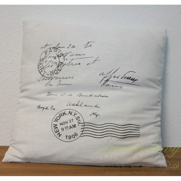 Biała, kwadratowa poduszka francuska pochodzenia niemieckiego w formie pocztówki!
