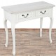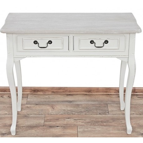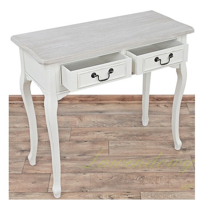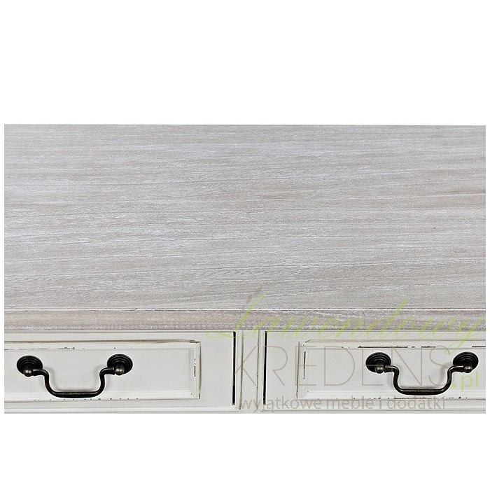 Przepiękna konsola w stylu prowansalskim to mebel wykonany z drewna paulownia i pomalowany na kolor kremowy, wyróżniający się francuskim zdobnictwem.