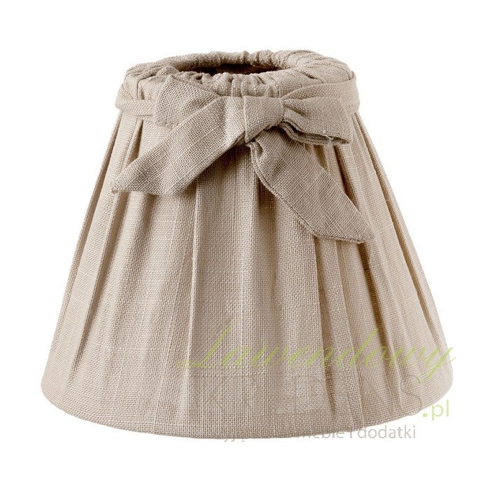 Abażur prowansalski wykonany jest z wysokiej klasy bawełny. Abażur z kokardką ma ciepły beżowy kolor i jest lekko marszczony. Abażury w stylu prowansalskim idealnie nadają się do salonu, czy innego pokoju.