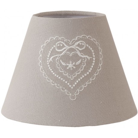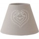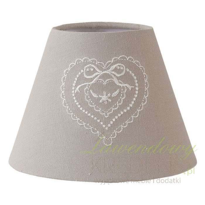 Abażur w stylu prowansalskim uszyto z bawełny i obdarzono naszywką w kształcie ozdobnego serca.