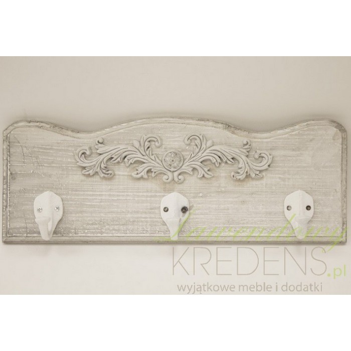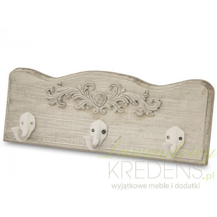 Szeroki bielony wieszak prowansalski o finezyjnej linii i cudownej dekoracji pośrodku!