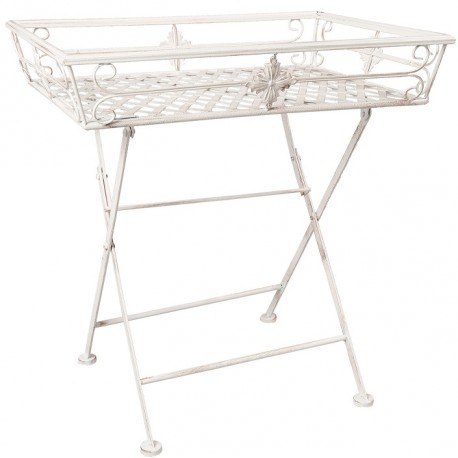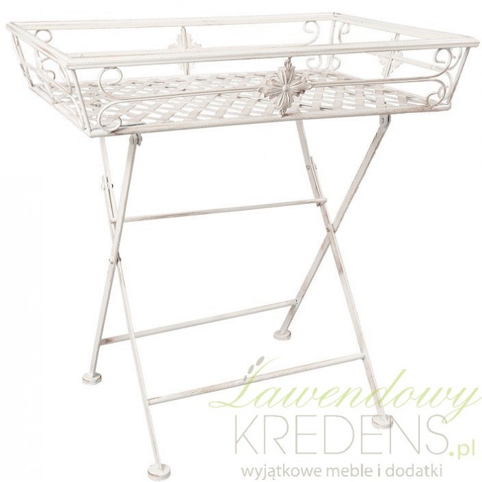 Kwietnik prowansalski wykonany w formie stolika z ażurową i bardzo dekoracyjną taca to projekt marki Clayre&Eef.