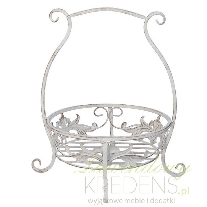 Kwietnik prowansalski firmy Clayre & Eef wykonany jest z dobrej jakości metalu. Kwietnik w stylu prowansalskim ma biały kolor i liczne przetarcia farby. Metalowy kwietnik stoi na finezyjnie wygiętych nóżkach a podstawka posiada świetną dekorację w postaci motywu roślinnego.