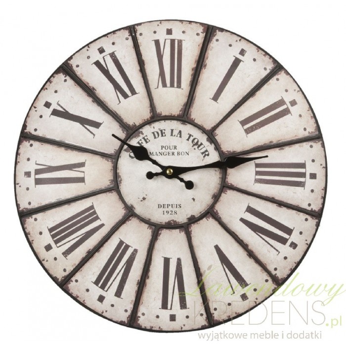 Umieszczając w swoim wnętrzu zegary ścienne z postarzeniami obudzisz w nim antyczny klimat. Zegar francuski z nadrukiem przypomina do złudzenia zegar z pordzawionego metalu. Na tarczy znajduje się okrąg z napisami i trapezy z cyframi rzymskimi. Zegary w stylu francuskim to jedne z najpiękniejszych dekoracji ściany od marki Clayre&Eef.