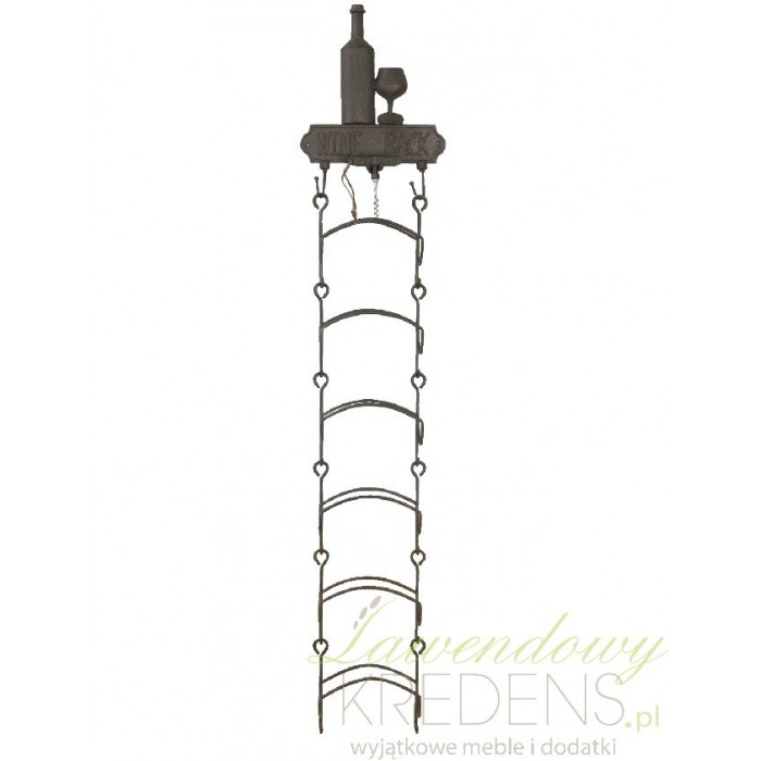 Metalowy wieszak na butelki z winem firmy Clayre & Eef z dekoracją w formie butelki wina i kieliszka!