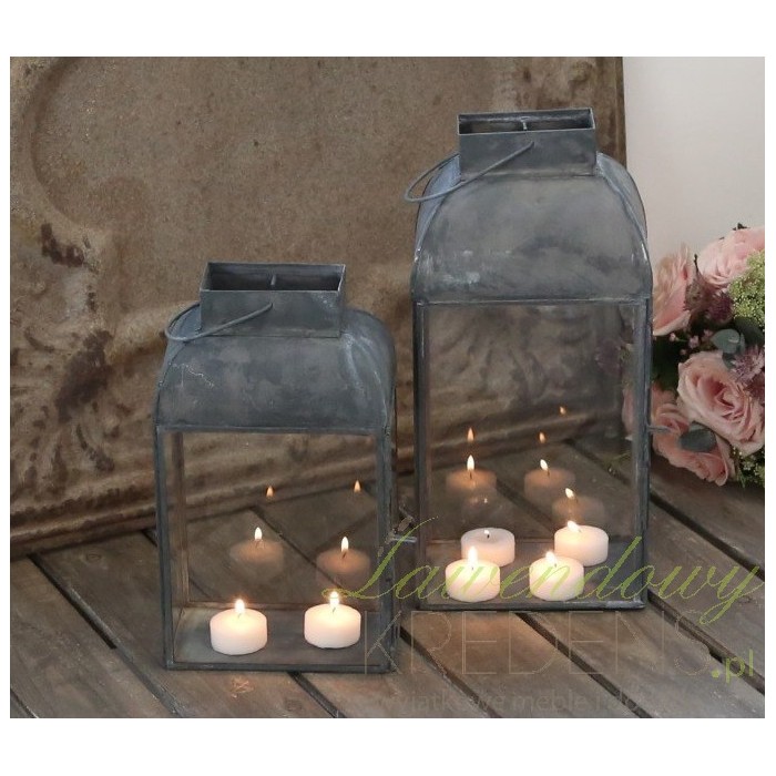 Metalowe lampiony stworzą cudowny, romantyczny nastrój w zimowe wieczory. Lampion metalowy firmy Chic Antique ma szary kolor a naokoło znajduje się przezroczyste szkło. Posiada wygodny, duży uchwyt do zawieszenia na przykład na balkonie.