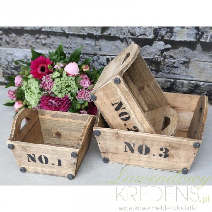 Drewniane osłonki to mocne i stabilne zabezpieczenie kwiatów czy roślin. Osłonki drewniane są w trzech różnych rozmiarach, od najmniejszej do największej i mają kształt kwadratu. Osłonki na doniczki firmy Chic Antique mają poręczne chwyty i dekorację w formie ozdobnych numerów z przodu. Mogą również posłużyć jako miska.