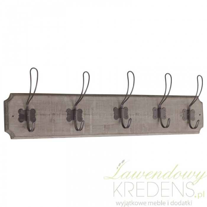 Wieszaki ścienne odmienią wystrój twojego mieszkania już dziś. Wieszak ścienny firmy Chic Antique stanowi delikatną i uniwersalną ozdobę kuchni. Na pięciu znajdujących się obo siebie wieszaczkach mogą znaleźć się ważne elementy wyposażenia kuchni takie jak: ściereczki kuchenne czy ręczniczki. Wieszak ma ciemny kolor i wykonany jest z dobrej jakości materiałów.