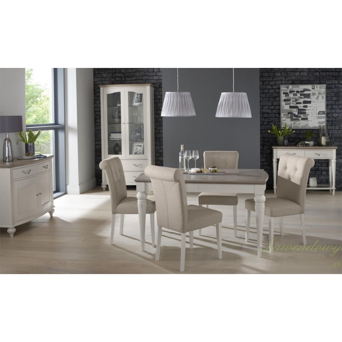 Prowanslaska komoda jasnoszara to wyjątkowy mebel do każdego pomieszczenia. Pojemna, praktyczna posiadająca szufladki z systemem cichego domyku. Podstawa wykonana z drewna bukowego, brązowy blat zaś z drewna dębowego. Niziutkie, pękate przednie nóżki oraz srebrne uchwyty idealnie komponują się w jedną całość.