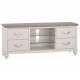 Prowansalska komoda RTV posiadająca szufladki i szklane półki, piękny mebel do salonu!