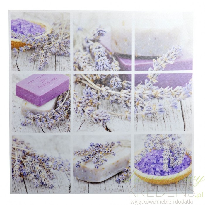 Obrazy z lawendą przywołują na myśl klimat gorącej Prowansji. Obraz w stylu prowansalskim wykonany jest w formie ciekawego kolażu. Prezentuje lawendę w różnych odsłonach. Obraz z lawendą idealnie nadaje się do łazienki, gdzie umili nam wieczorną kąpiel.