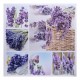Prowansalskie obrazy z lawendą na które składa się kilka mniejszych obrazów przedzielonych białymi liniami.