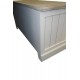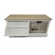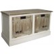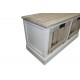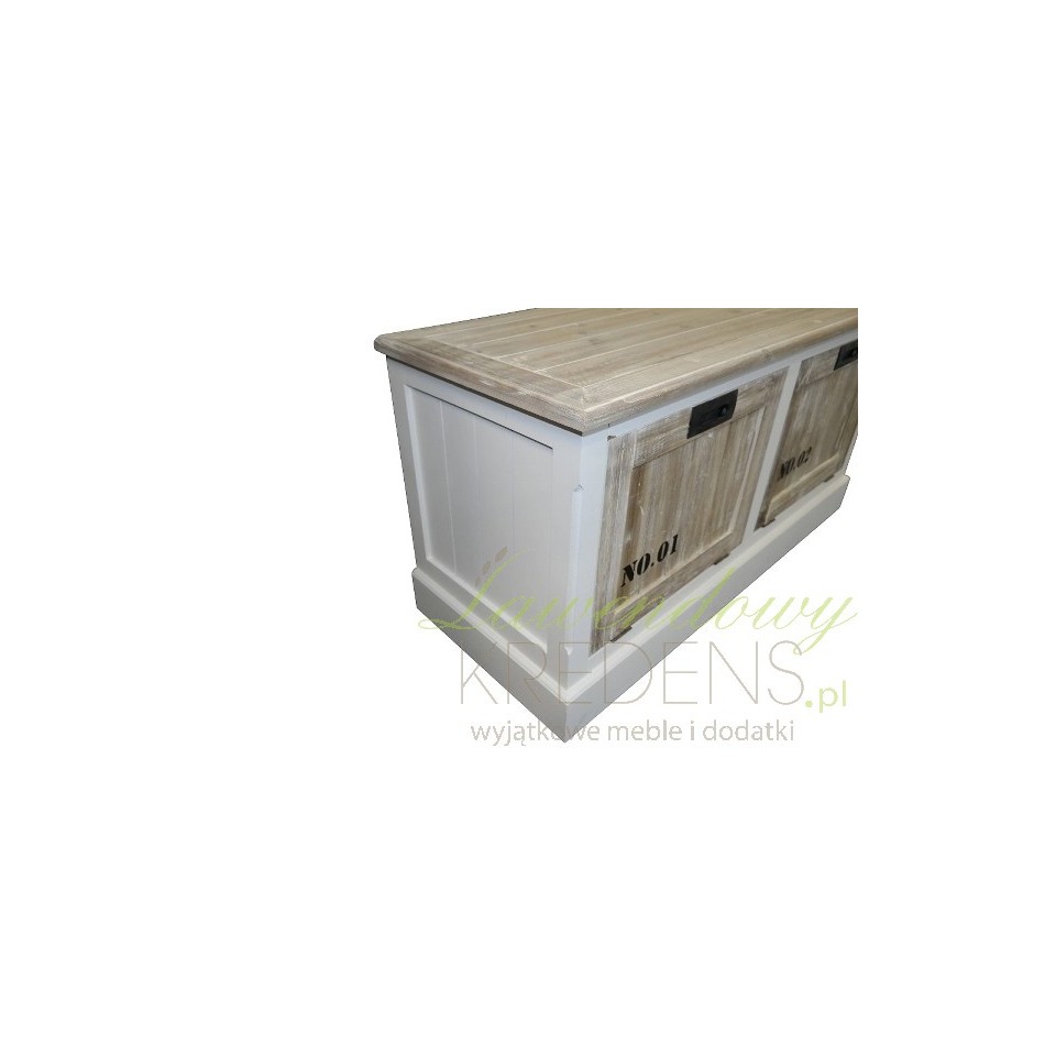 Biało-brązowa, niska komoda wykonana z drewna paulownia to ładny mebel poddany zabiegom bielenia.