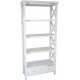 Białe meble wykonane z drewna paulowania to atrakcyjne regały o oryginalnych zdobieniach i jasnej kolorystyce.
