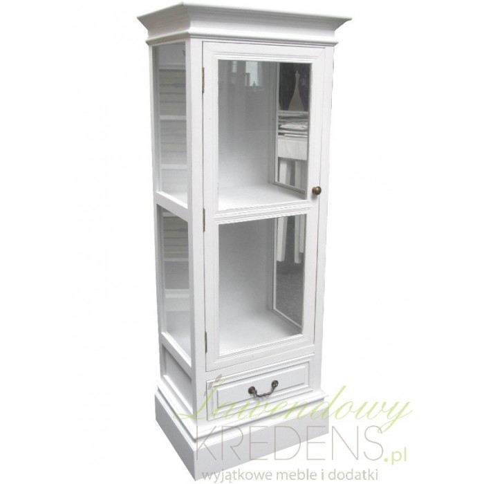 Biała witryna pochodzenia niemieckiego to świetny prezent dla rodziny czy znajomych. Witryna prowansalska ma wbudowaną na dole małą szufladkę, a na górze znajduje się duża szafka przedzielona jedną półką. Obudowana jest z przodu i z boku szkłem, co daje jej zjawiskowy efekt. Meble w stylu prowansalskim to elegancja i szyk, które będą nam towarzyszyć na co dzień.