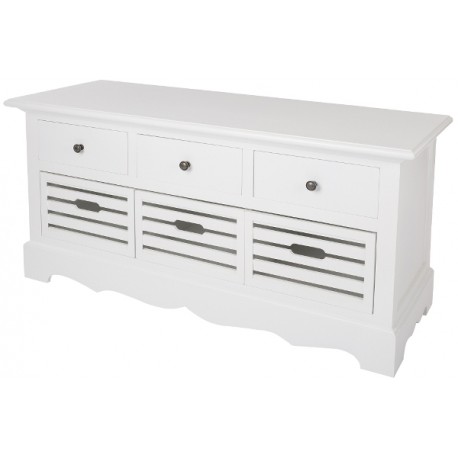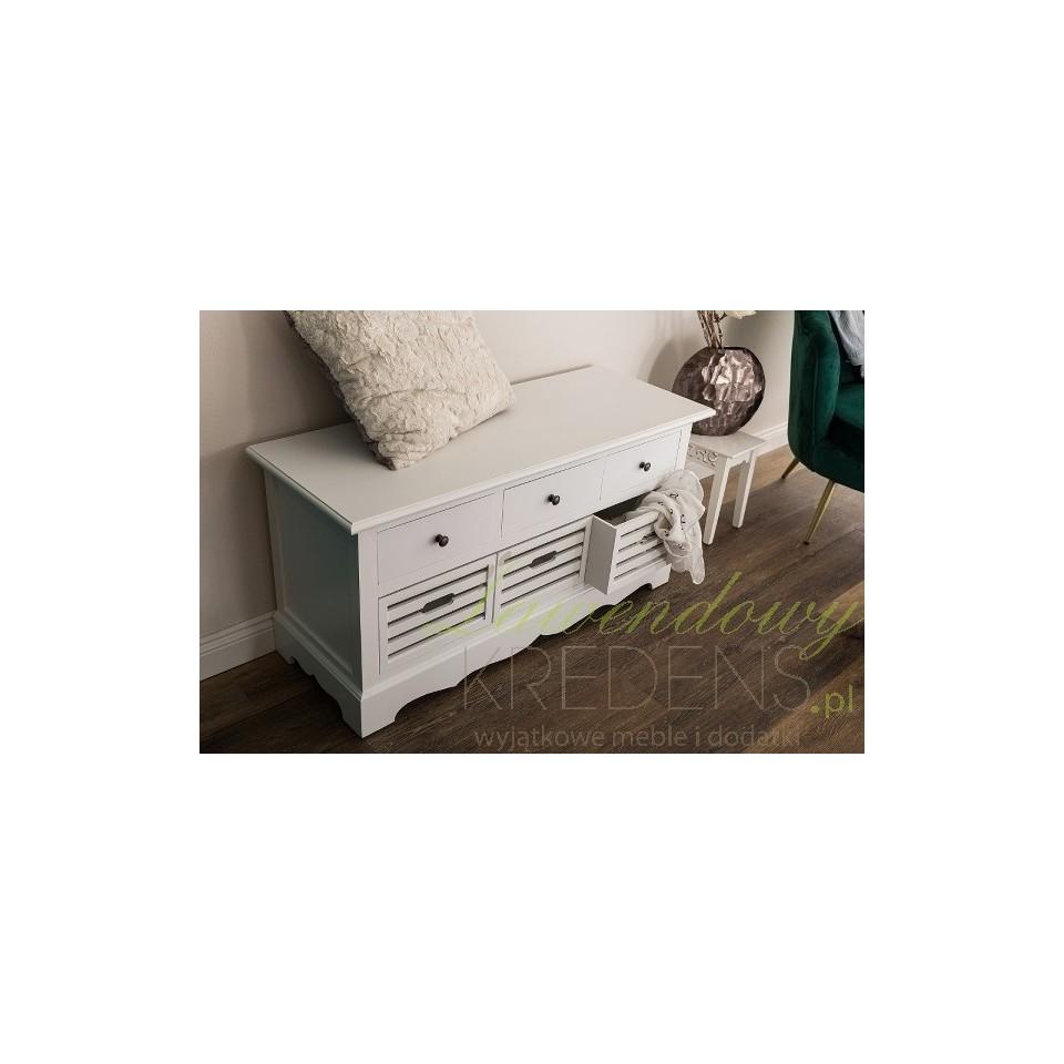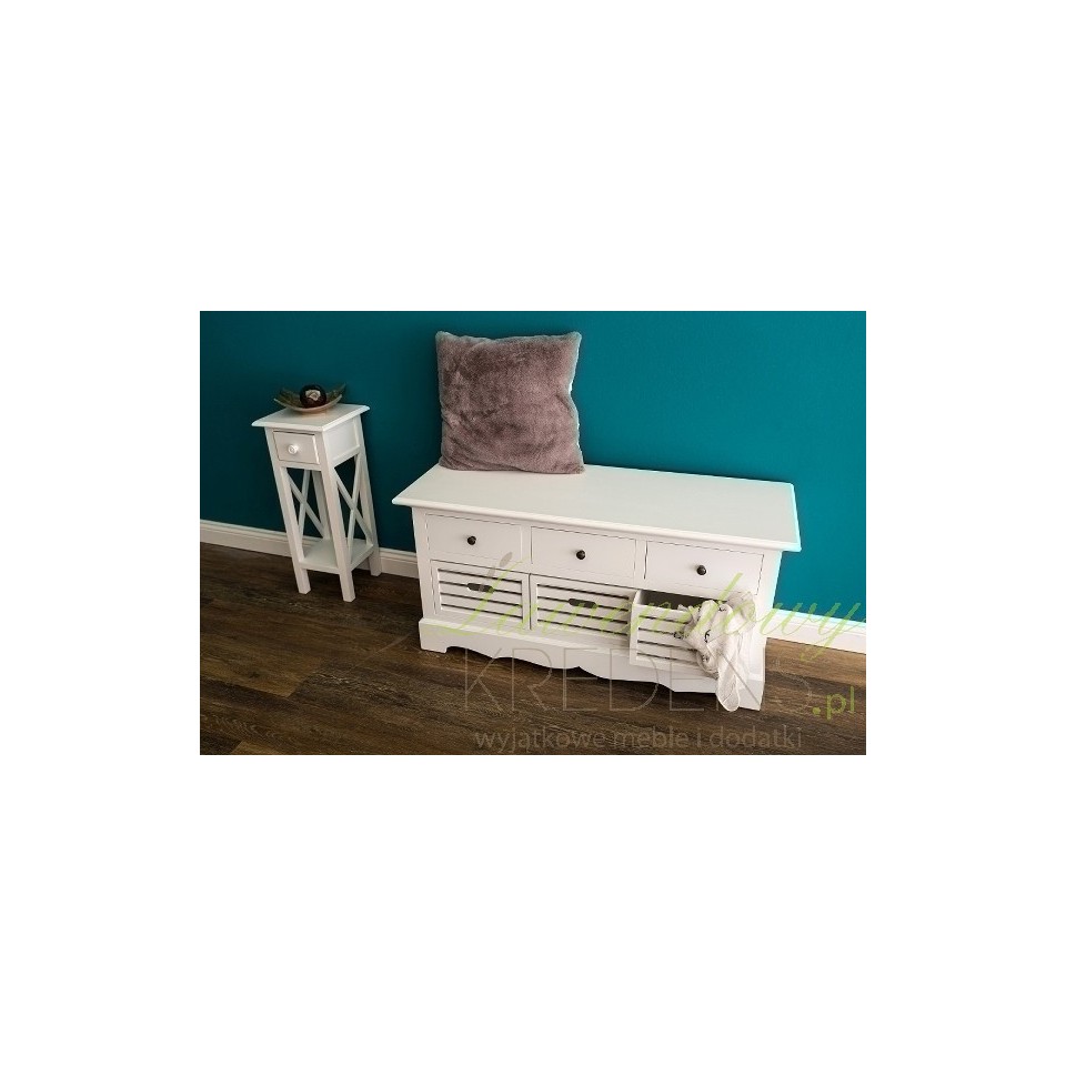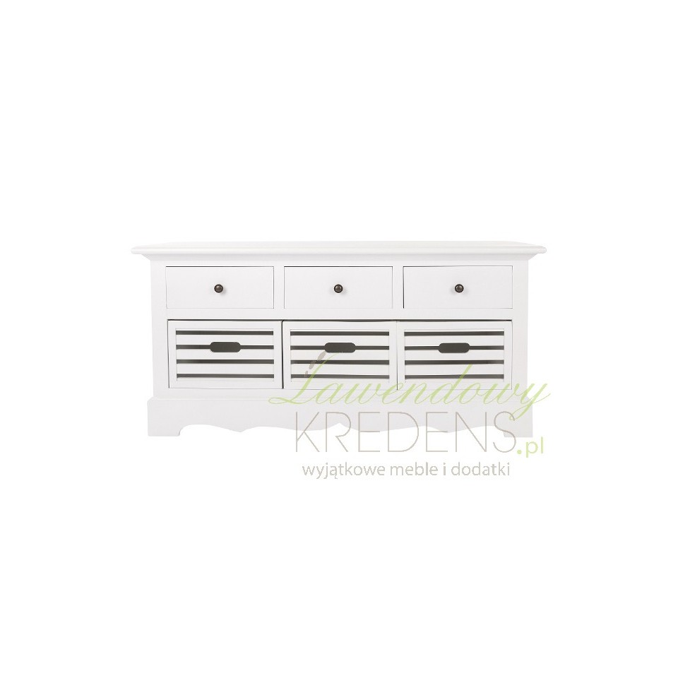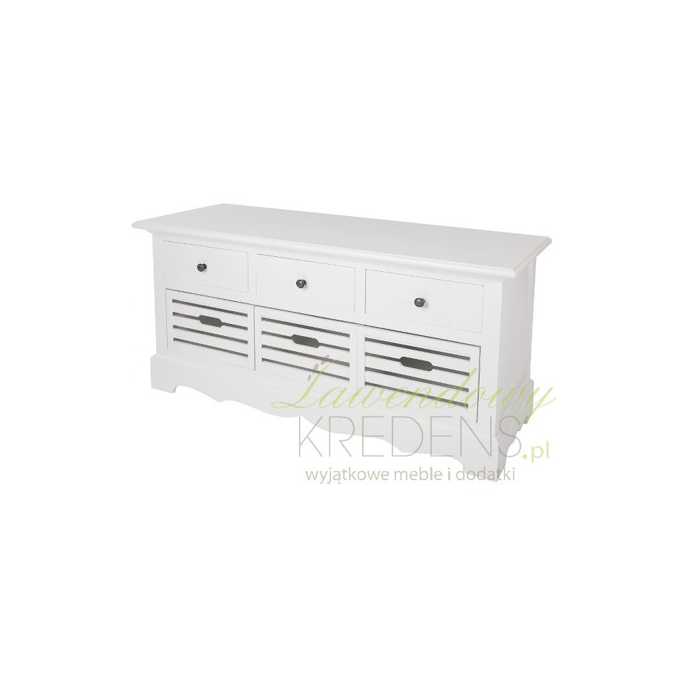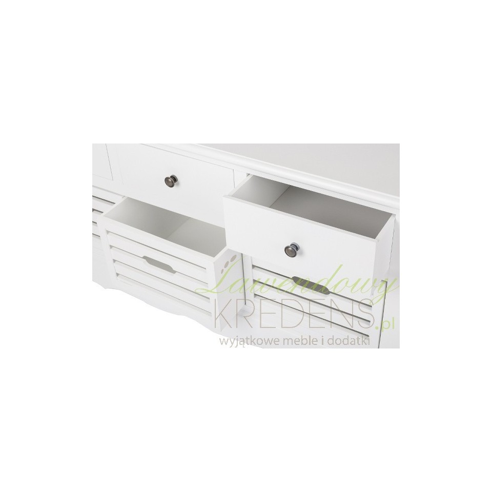 Wyróżniająca się niebanalnymi szufladami w postaci wyciąganych skrzynek niska komoda w stylu prowansalskim, dzięki której rozjaśnisz swoją przestrzeń i nadasz jej klimatu prosto z południowych stron. Komoda doskonale sprawdzi się także jako szafka pod telewizor, czy zestaw grający. Wykorzystaj ją aby odmienić swoje wnętrze!