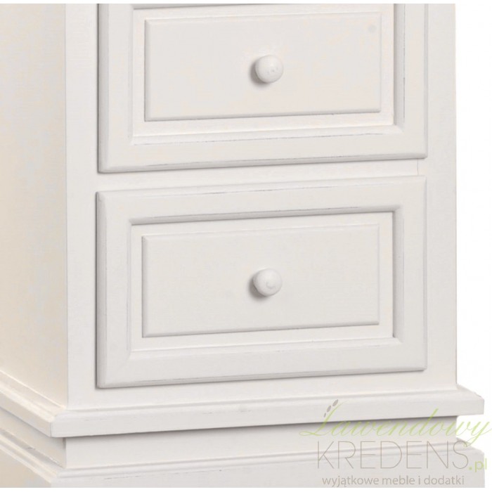 Wspaniała, biała i wąska komoda prowansalska z kolekcji Riviera z pięcioma niewielkimi szufladkami!