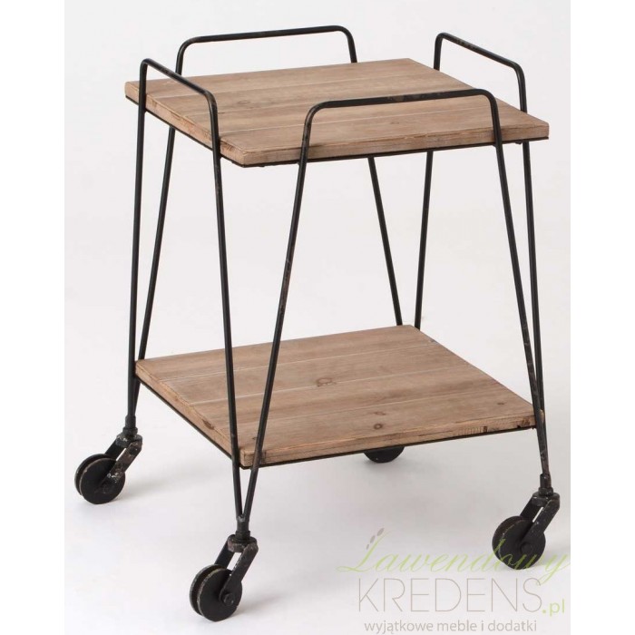 Meble loft, a wśród nich stolik loft są idealnym elementem dekoracyjnym wnętrz loftowych i industrialnych. Stolik na kółkach jest niezbyt wysoki i ma dwie półki na górze i dole. Wykonany jest z metalu i drewna pochodzącego z recyklingu. Stabilna konstrukcja i cztery kółka sprawiają, że stolik można z łatwością przesunąć w dowolne miejsce nie używając przy tym dużo siły.