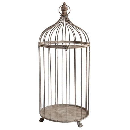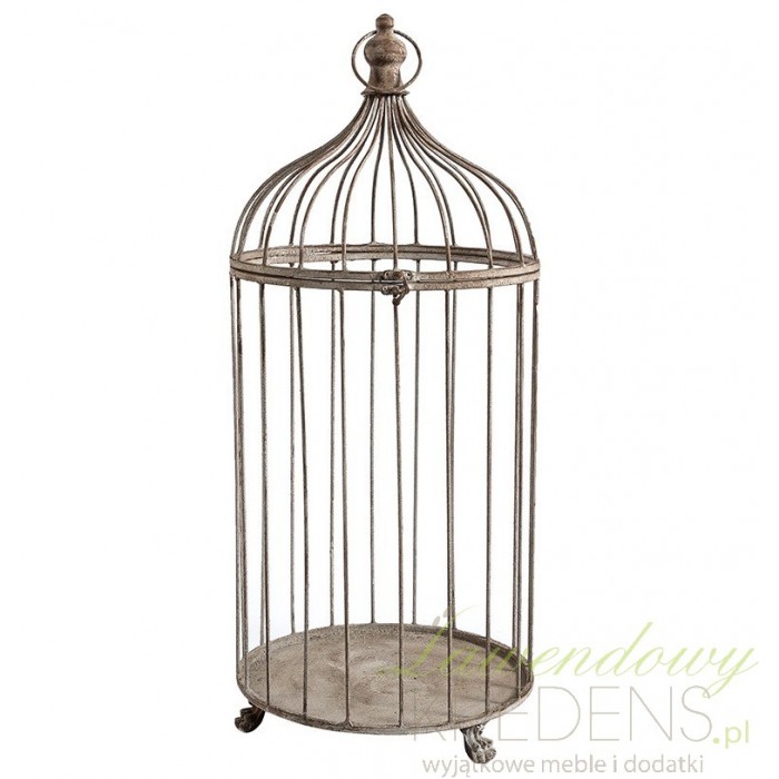 Klatka ozdobna z serii garden Grey wykonana jest z metalu i ma przetartą farbę. Klatka w stylu prowansalskim firmy Belldeco ma okrągły, spory uchwyt do powieszenia. Można ją podwiesić do sufitu lub po prostu postawić na stole.