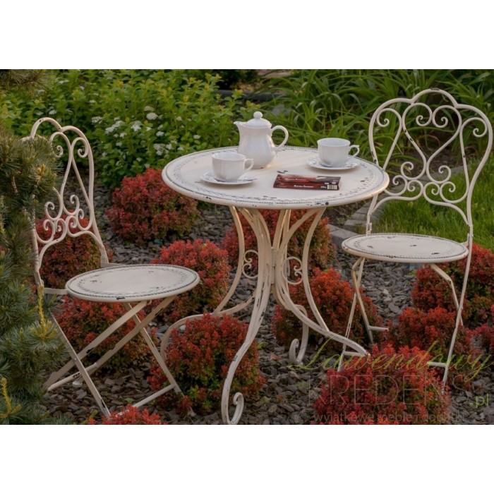 Stolik metalowy ma śliczny kremowy kolor z licznymi przetarciami farby. Ma okrągły kształt i przepiękne finezyjne cztery nogi, u góry łączące się w jedną całość. Stolik prowansalski wykonany jest z wysokiej jakości metalu i wygląda rewelacyjnie. Meble Aluro wyglądają doskonale zarówno w domu, jak i w ogrodzie.