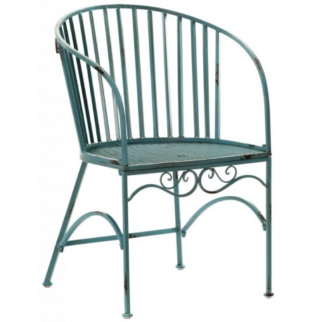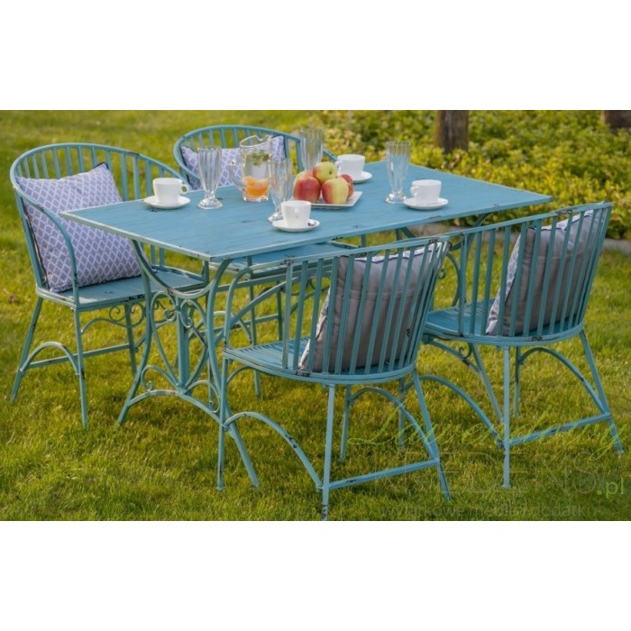 Metalowy fotel prowansalski do ogrodu ma uroczy kolor niebieski i antyczne przetarcia, które sprawiają, że to model,. który doskonale podkreśli każdy francuski aranż ogrodowy.