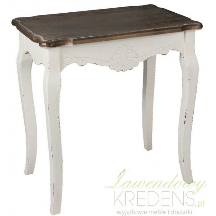 Stolik kawowy w kolorze antycznej bieli będzie doskonałym dopełnieniem kącika wypoczynkowego w Twoim salonie lub w pokoju gościnnym. Stolik Shabby Chic umożliwi także spożywanie posiłku lub picie kawy w otoczeniu wyjątkowych mebli. Stolik nocny ma ciemny, brązowy blat i charakterystyczne rzeźbienie pod nim. Meble Shabby Chic warto połączyć z innymi dodatkami noszącymi ślady antycznych postarzeń.