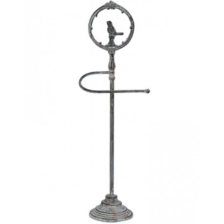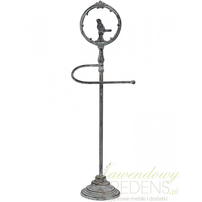 Elegancki stojak na papier toaletowy, który wyróżnia się spośród pozostałych niezwykłym zdobieniem w postaci ptaszka w metalowej obręczy. W dodatku jego powierzchnia jest starannie postarzana, dzięki czemu wygląda on na zabytkowe dzieło sztuki. Nie zastanawiaj siedłużej i już dziś zamów stylowy uchwyt na papier!