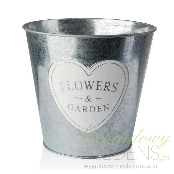Osłonki na doniczki nie tylko pięknie wyglądają, ale również pełnią ważną praktyczną funkcję zabezpieczającą rośliny przed uszkodzeniem. Osłonki metalowe mają srebrny kolor i wyglądają niczym wiaderka. Z przodu znajduje się delikatne białe serduszko z napisem Flowers & Garden. Osłonki to idealne miejsce na kwiatki czy różnego rodzaju rośliny lub przyprawy.