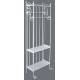 Biały regał do łazienki w którego górnej części znajdują się drążki do rozwieszenia ręczników.
