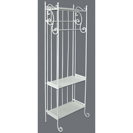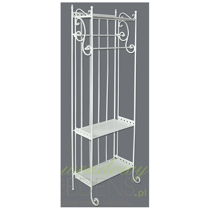 Prowansalski stojak na ręczniki ma biały kolor i został w całości wykonany z metalowych elementów.