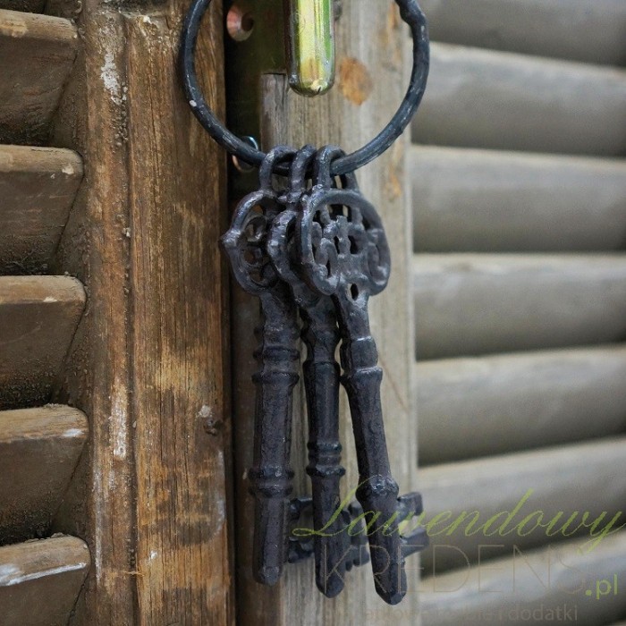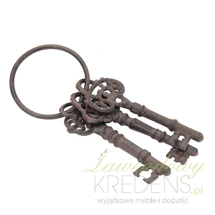 Klucze ozdobne, a w tym wypadku klucze żeliwne firmy Clayre & Eef zawieszone są na okrągłym uchwycie. Żeliwne klucze stanowią intrygującą ozdobę domu i stanowią pewną tajemnicę, którą każdy gość chciałby posiąść. Klucze są w liczbie trzech. To nietypowa i niezapomniana pamiątka.
