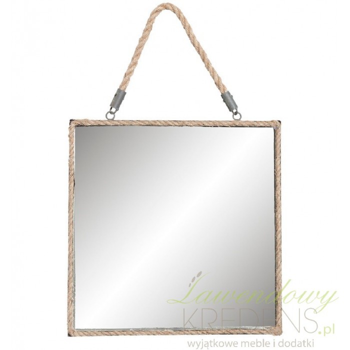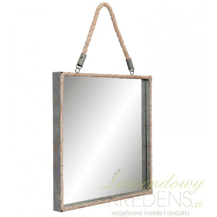 Lustro na sznurze to wspaniała ozdoba mieszkania czy klubu. Lustro w stylu marynistycznym wykonane jest z metalu i ma szary kolor. Jest kwadratowe i zawieszone na sznurze, dzięki czemu stanowi niepowtarzalną i wyjątkową ozdobę. Polecamy!