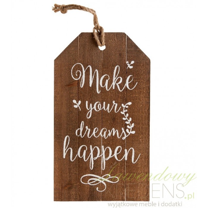 Oryginalny obraz z napisami w formie dużej, drewnianej zawieszki to oryginalna dekoracja, która sprawdzi się w Twoim domu jeśli masz już dość tradycyjnych obrazów. Sam obraz ma naturalny, brązowy kolor, natomiast biały, ozdobny napis ma biały kolor. Obraz na desce prezentuje się bardzo ciekawie i może stać się świetnym prezentem na przykład na parapetówkę!