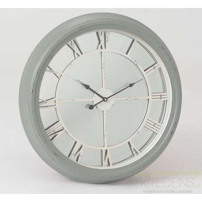 Zegar z lustrem to niezwykle uroczy dodatek do każdego pomieszczenia w Twoim domu. Doskonale pasuje zarówno do dużych przestrzeni jak i do klimatycznych wnętrz. Lustro z metalową tarczą niezwykle efektownie komponują się z postarzaną ramą zegara. Zegar ścienny to w naszej ofercie bardzo wyjątkowy dodatek, który zachwyca oryginalnością i szykiem!