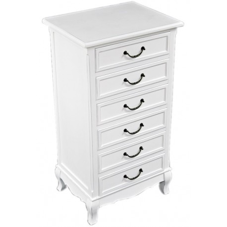 Biała Komoda Prowansalska z sześcioma szufladami to elegancki mebel, który nie tylko pięknie się prezentuje ale również pozwala na przechowywanie wielu rzeczy.
