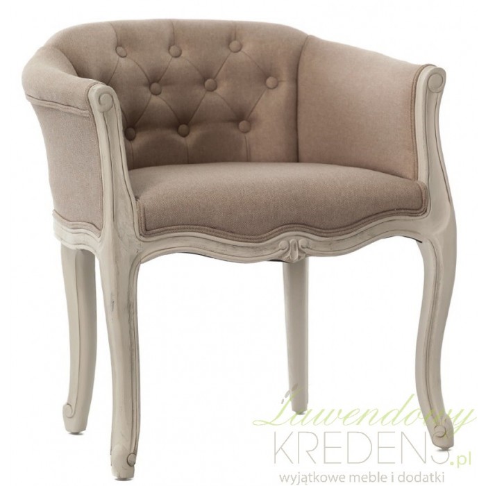 Niezwykle szykowny fotel z kolekcji Aluro Palida to mebel inspirowany wytwornym stylem prowansalskim. Do wykonania fotela Aluro wykorzystano drewno bukowe w beżowej kolorystyce, co w połączeniu z beżową tapicerką daje niesamowity efekt wizualny. Fotel prowansalski ozdobiony został subtelnymi rzeźbieniami w drewnie tuż pod siedziskiem i na nogach. Z pewnością będzie godnie prezentował się w Twoim salonie i nie tylko!