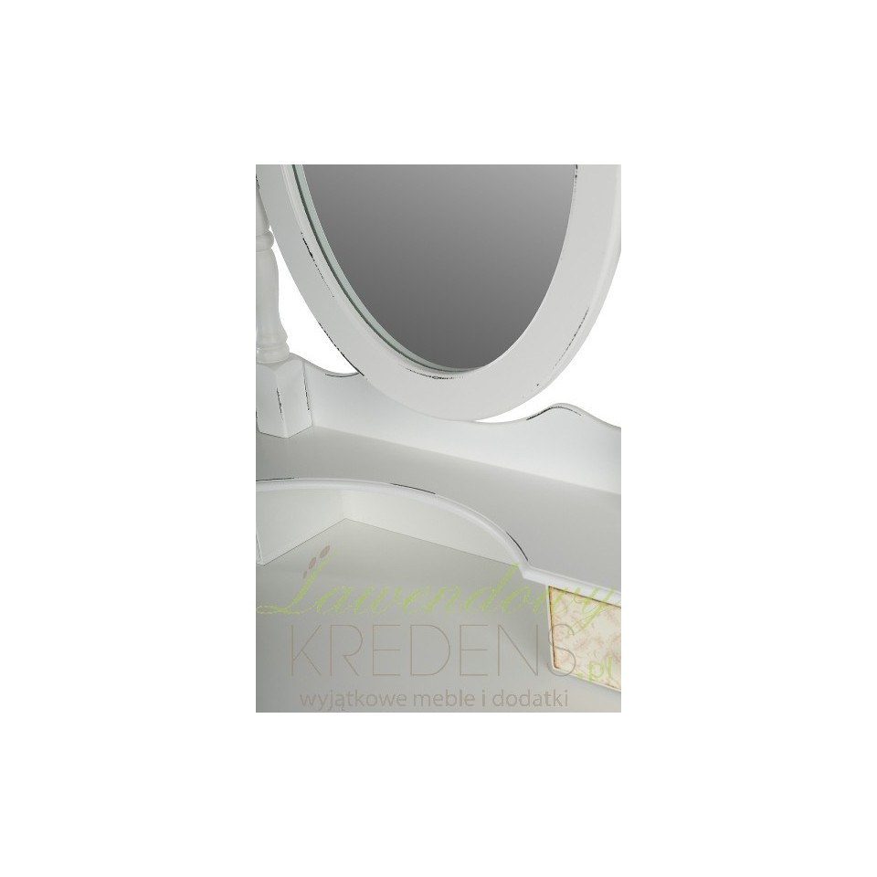 Toaletka prowansalska jest wyróżniającym się elementem wystroju kobiecego wnętrza – wzbudza zainteresowanie gości i jest niczym magnes dla kobiet. Na co dzień posłuży najczęściej jako miejsce do makijażu i kreowania stylizacji. Toaletka w stylu prowansalskim została wykonana z drewna i pomalowana na biało. Poza dwiema dekoracyjnymi szufladami we wzory, toaletka posiada atrakcyjne rzeźbienia i wygięte nogi. Polecamy kolorowe meble w stylu prowansalskim!