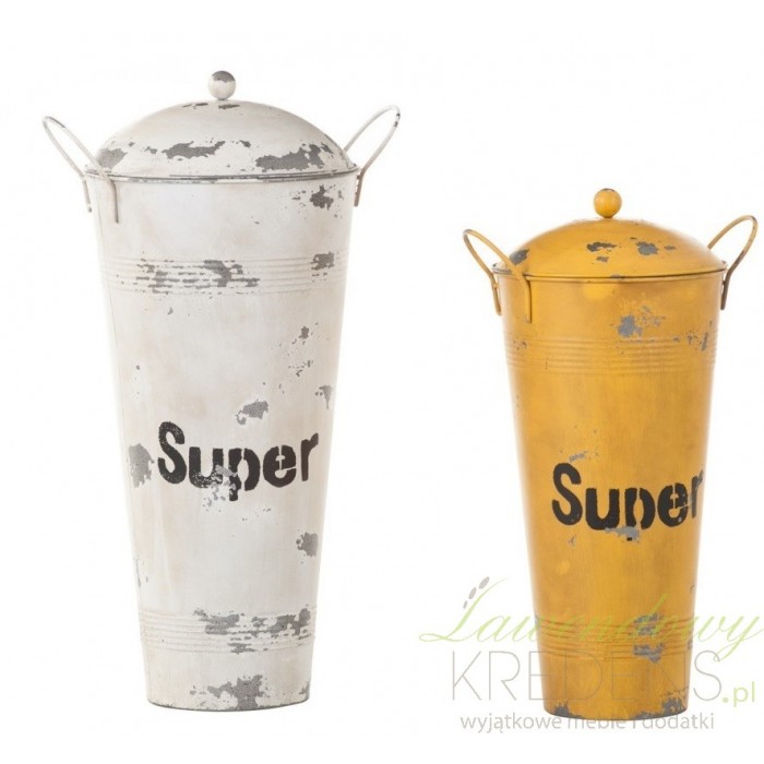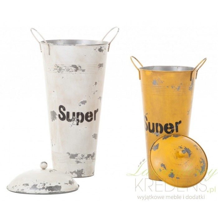Ciekawie prezentujące się pojemniki Aluro z kolekcji Mazine z przykrywkami. Na każdym z pojemników widnieje czarny napis Super. Dodatkowo pojemniki wyposażone są w uchwyty, a przykrywki w wygodne gałeczki ułatwiające podnoszenie ich do góry. Klorowe pojemniki możesz wykorzystać do dekoracji każdego wnętrza oraz moga pełnić funkcję kosza na śmieci.