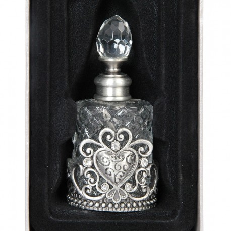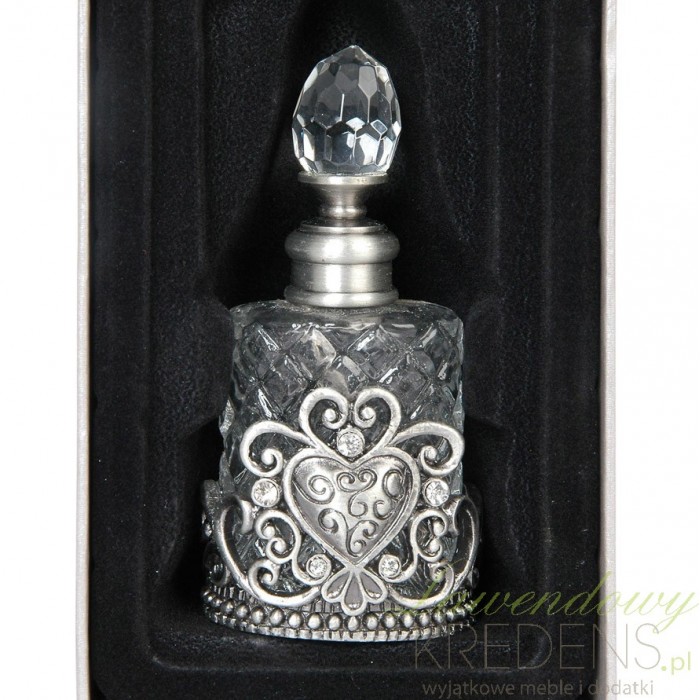 Buteleczka na perfumy to szklany pojemnik z dekoracyjnym okuciem. Metalowe rzeźbienia uformowane są w kształt serca i essowate wzory. Flakonik na perfumy prowansalski posiada także praktyczną przykrywkę wyglądającą jak kryształowa kula. Marka Clayre&Eef zadba o to byś zawsze czuł się wyjatkowo, piękne dodatki to podstawa.