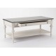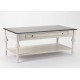 Wyjątkowy stolik kawowy w stylu prowansalskim i kolorze antycznej bieli z półeczką oraz szeroką szufladą.