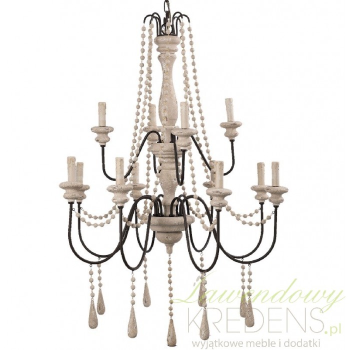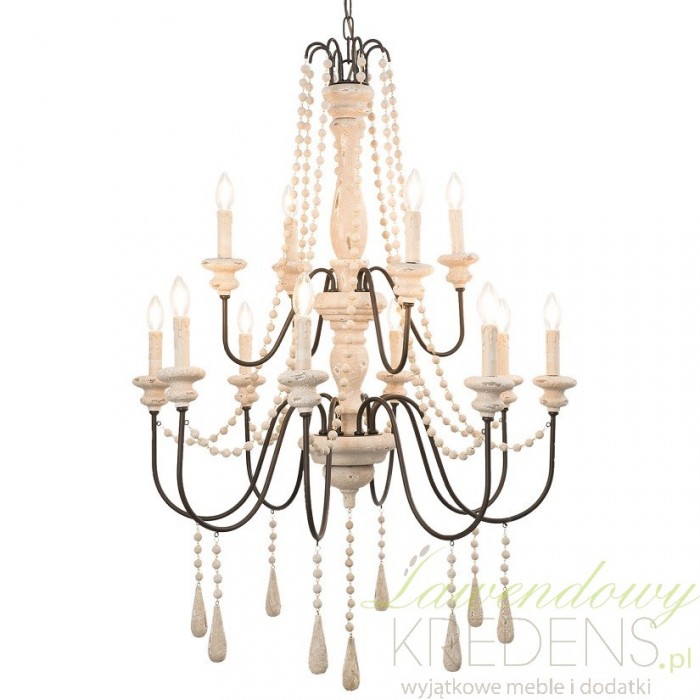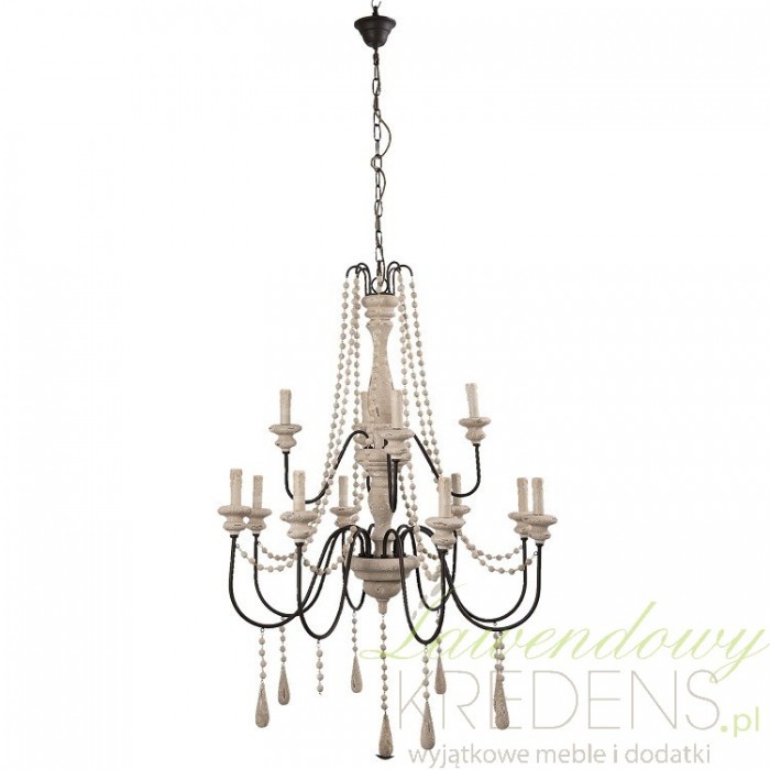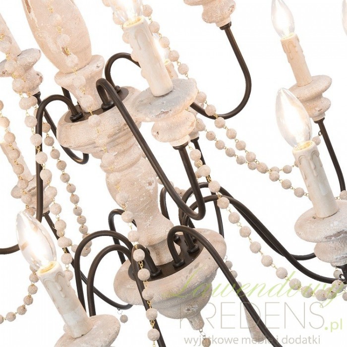 Bardzo okazały żyrandol prowansalski, który będzie świetnie wyglądał w większych wnętrzach zachwycając swoją stylistyką.