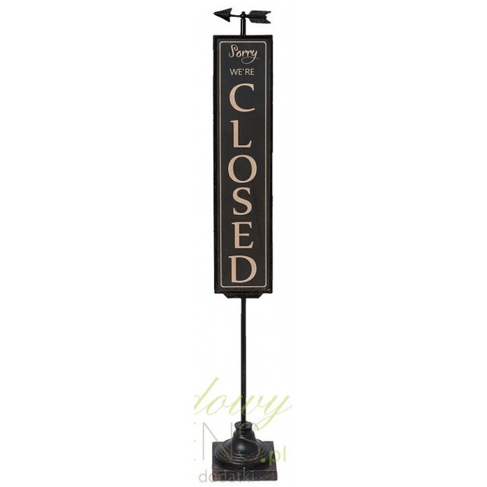 Tablica ozdobna wykonana z metalu z napisami Open/Closed kształtem przypomina duży znak.